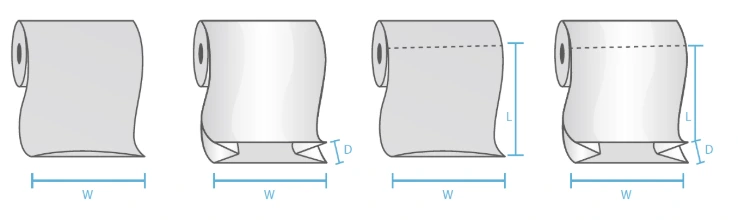 | Bag TypeFlat Poly Bags | Order of MeasurementsWidth x Length | Width1.5" - 54" | Length2" - 64" | Gauge0.75 - 8 |